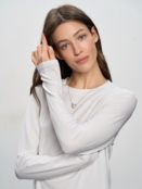 Лонгслів Roza з круглим вирізом має вільну посадку, що підійде до будь-якого типу фігури.