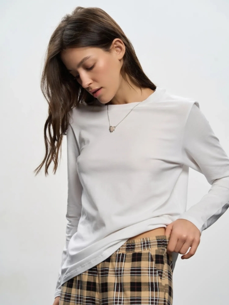 Лонгслів Roza з круглим вирізом має вільну посадку, що підійде до будь-якого типу фігури.