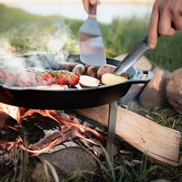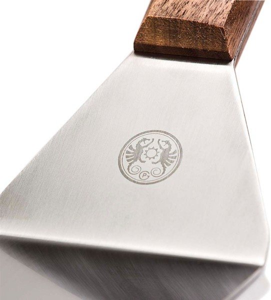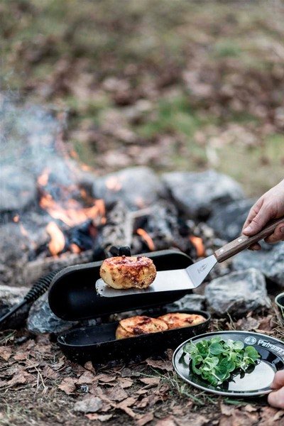 Пластина з нержавіючої сталі звужується до переднього краю, щоб ви завжди тримали все під контролем під час шипіння. Завдяки цьому вона залишається податливою та гнучкою, тому ви можете перевертати продукти будь-якого розміру. Водночас лопатка досить стійка, щоб видалити патьоки з дна сковороди або каструлі. До речі, гнучка лопатка особливо підходить для решіток-гриль Petromax fs38, fs48 і fs56. Завдяки отвору на кінці ручки її можна легко повісити та зберігати.