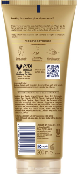 - Лосьйон-автозасмага для тіла Dove Summer Revived Від світлого до середнього 200 мл