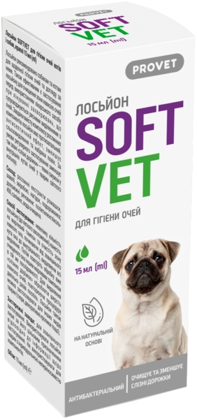 - Лосьйон для гігієни очей для котів і собак Provet Softvet від забруднень та подразнень 15 мл