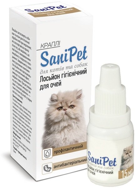 Лосьйон краплі по догляду за очима котів та собак SaniPet 15мл