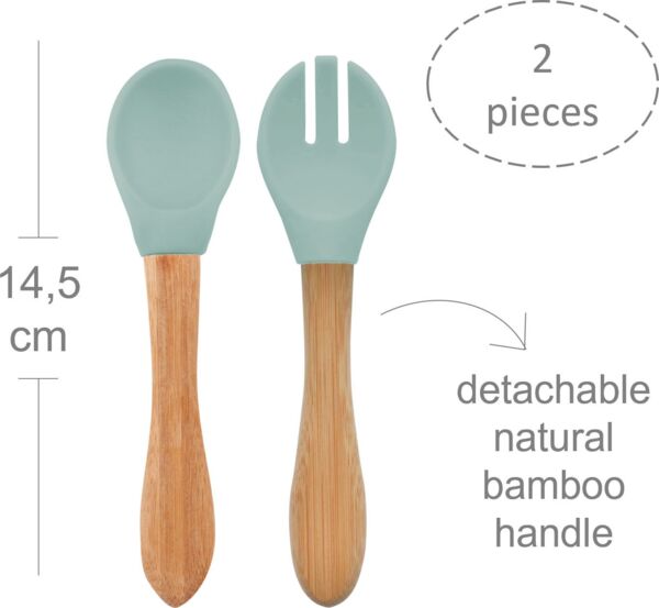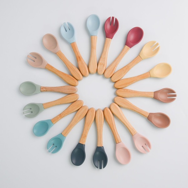 - Ложка і виделка покриті 100% харчовим силіконом.