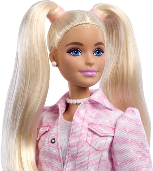 Ця лялька Barbie поєднує джинсову куртку з відповідною "денімовою" спідницею. Накладні кишені та декоративні ґудзики додають образу вишуканих деталей, а смугастий візерунок "шеврон" відсилає до оригінальної Barbie 1959 року. Яскравим акцентом образу ляльки Barbie є чарівна сумочка у формі бантика з ручкою у вигляді перлин. Завдяки рухомим суглобам лялька може приймати безліч поз разом зі своєю сумочкою.