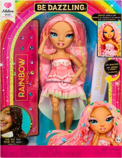 Аделін Роуз є частиною ексклюзивної колекції Be Dazzling. Доповніть свою команду Rainbow High Вів'єн, Селін, Женев'євою та Ноемі — кожна з них має свій власний стиль та блискучі аксесуари.