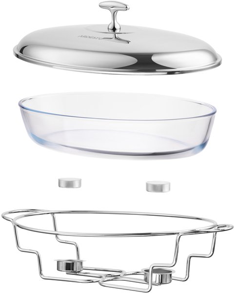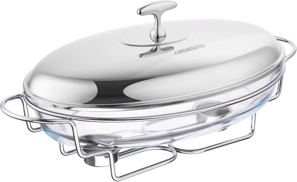 Овальний марміт ARDESTO вироблено з прозорого термостійкого скла, а кришка та підставка – із нержавіючої сталі. Об’єму 3 л цілком достатньо для приготування великих порцій, а щоби подана страва довше залишалася теплою, передбачено підсвічник для однієї свічки (є в комплекті). Діапазон термостійкості – від -40 до +400 °C, тож скляна ємність придатна до використання в мікрохвильовій печі чи духовій шафі. Догляд за виробом не спричине складнощів, адже ємність допустимо мити в посудомийній машині, щоправда, без кришки та підставки.