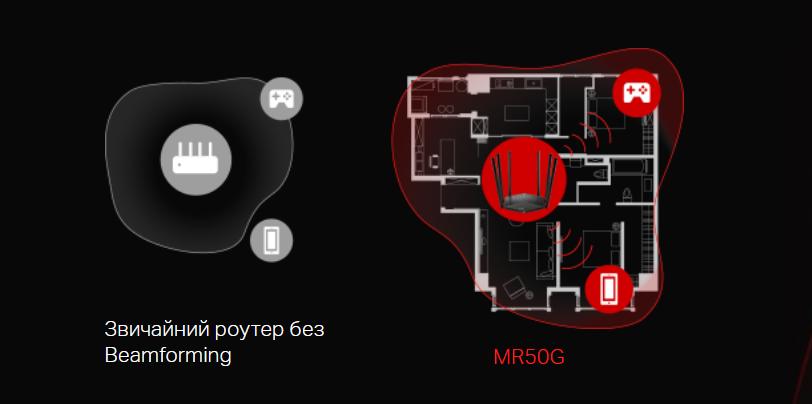Традиційний маршрутизатор повинен поставити ваші пристрої в чергу, коли одночасно в мережі є кілька з'єднань, що спричиняє загальну мережеву перевантаження. Однак за допомогою технології MU-MIMO MR50G взаємодіє з кількома пристроями одночасно, щоб скоротити час очікування та зробити вашу мережу більш ефективною.