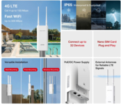 | Функції та можливості | Підтримка 4G (LTE), Підтримка DDNS, Підтримка PoE, Підтримка WPS, Встановлення поза приміщенням |