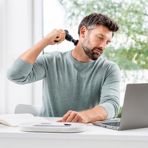 MG 79 Massage Gun дуже маленький (всього 14,7 см), але при цьому дуже потужний. Завдяки трьом рівням інтенсивності, трьом масажним насадкам і часу роботи від акумулятора до 3 годин він ідеально підходить для чутливих ділянок тіла, як-от м'язи шиї.