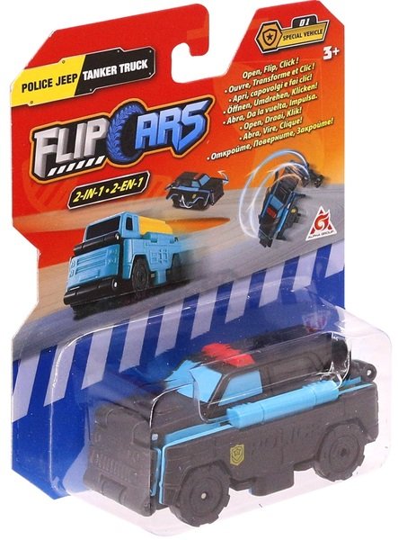 Перевозити велику кількість вантажу або бути поліцейським? А якщо два в одному? Пориньте в світ механіки і транспорту! Дивовижна колекція Flip Cars доставить вам вдвічі більше задоволення! Ці унікальні машинки можуть трансформуватися в автомобіль іншого типу! Досить кількох рухів і машина поміняє вигляд. Збери їх все і дозволь собі зануритися в кілометрову пригода! Батьки можуть бути спокійні, адже іграшка виконана з високоякісних матеріалів, міцна і безпечна. Її зручно брати з собою на прогулянку: розмір моделей дуже компактний і легко поміщається в сумці або дитячому рюкзаку. З Flip Cars малюк розвиває фантазію, тренує дрібну моторику, координацію рухів, активізує просторове і логічне мислення, а ще чудово проводить час. У колекції велика кількість моделей, а значить можна зібрати цілий автопарк і змагатися з друзями. Машинки ніколи не набриднуть, адже купуючи одну модель, діти отримують цілих дві яскравих іграшки і масу ідей для забав і розваг як поодинці, так і в компанії.