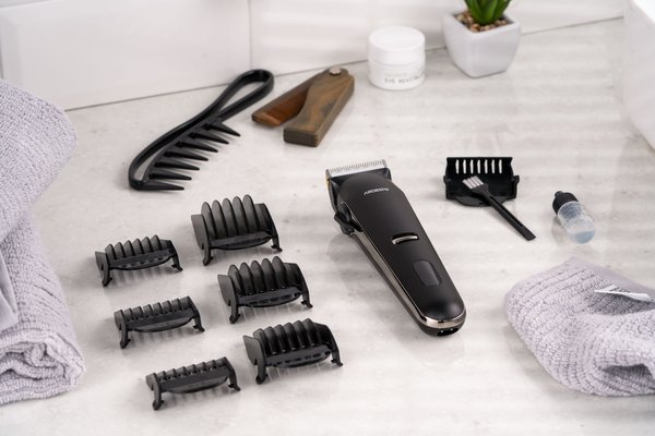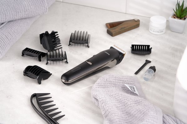 Машинка легка і тримати її зручно. Компактний розмір дає можливість легко маневрувати під час стрижки, дістаючи до важкодоступних місць. У комплекті йдуть різні насадки , що можна вибрати потрібну довжину волосся та експериментувати з різними зачісками чи доглядом за бородою. Ножі знімні, що полегшує чищення після використання. Працює машинка досить тихо.