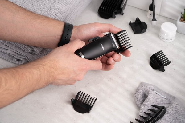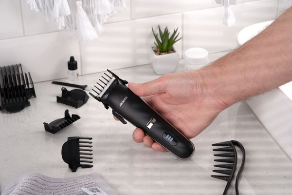 Удобно, что эта машинка может работать как от аккумулятора, так и от сети - я не всегда успеваю зарядить перед стрижкой. Использую и для волос на голове, и для бороды. Насадок для разной длины более чем достаточно.