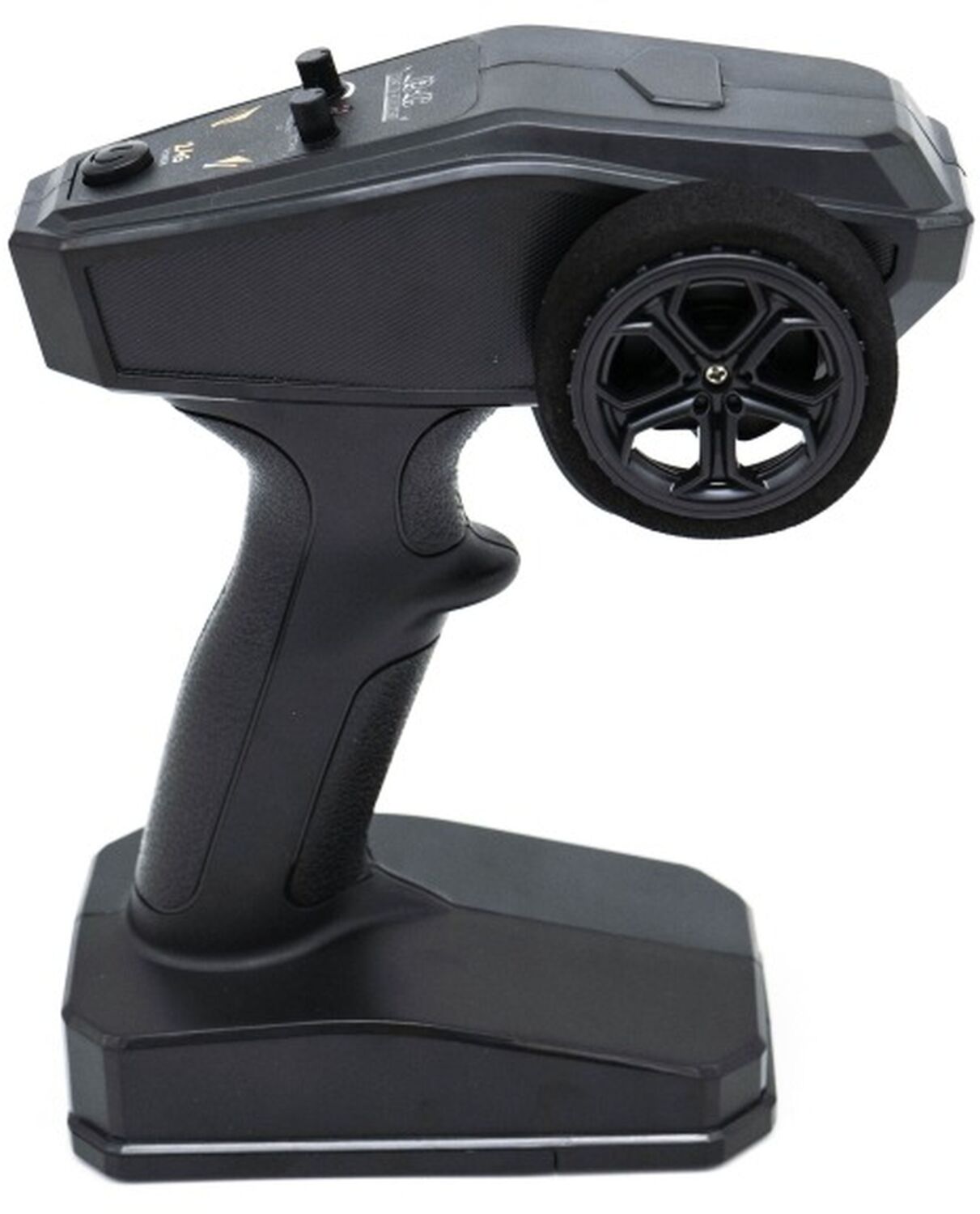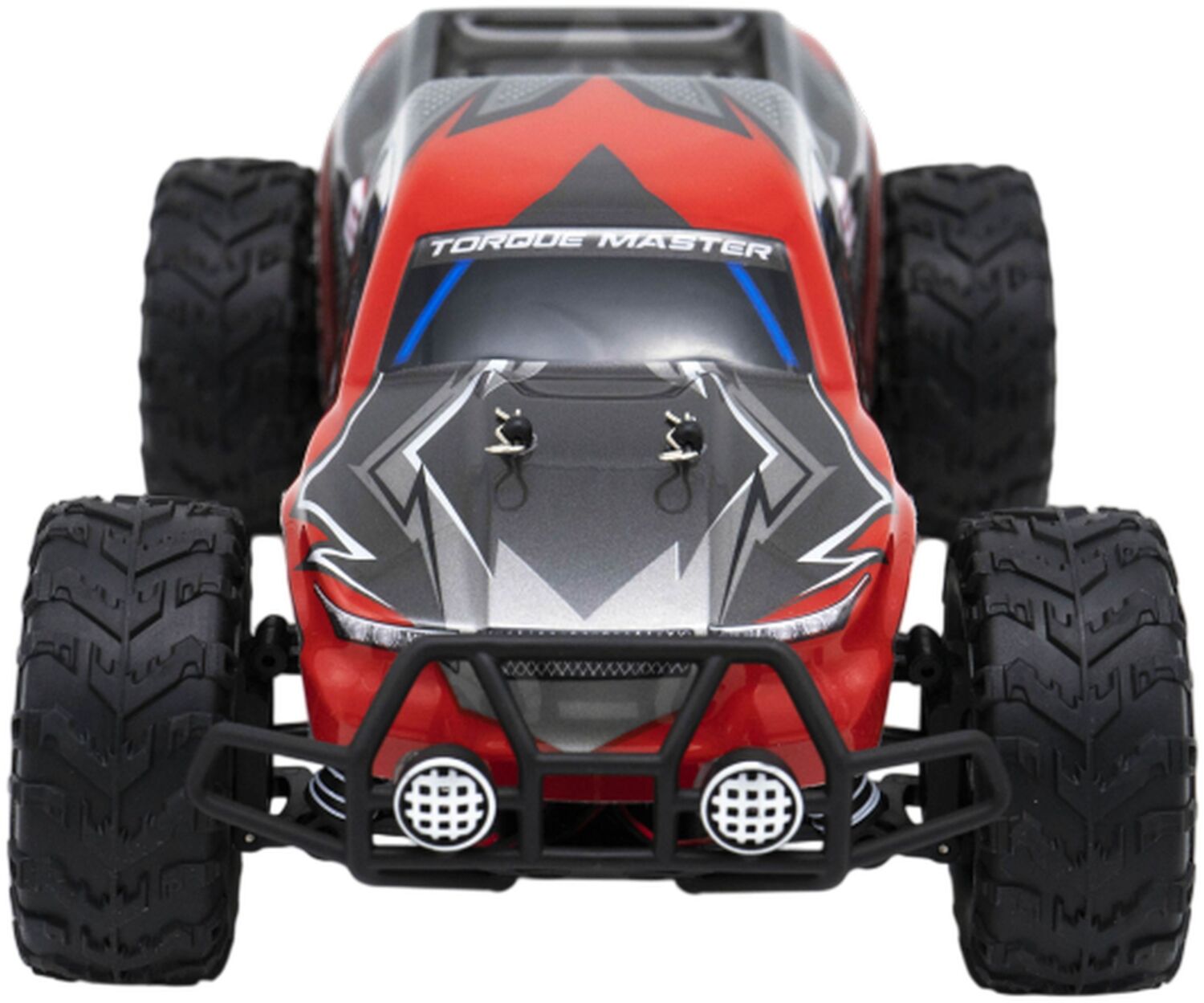Завдяки пропорційному керуванню швидкістю та поворотами, ви отримуєте точне і плавне керування. Позашляхові можливості цієї моделі підсилюються шарнірною передньою та задньою підвісками з амортизацією, протиковзкими шинами та робочими фарами, які підходять для будь-яких умов їзди. Машинка оснащена ударостійкими переднім і заднім бамперами, що забезпечують додатковий захист при зіткненнях.