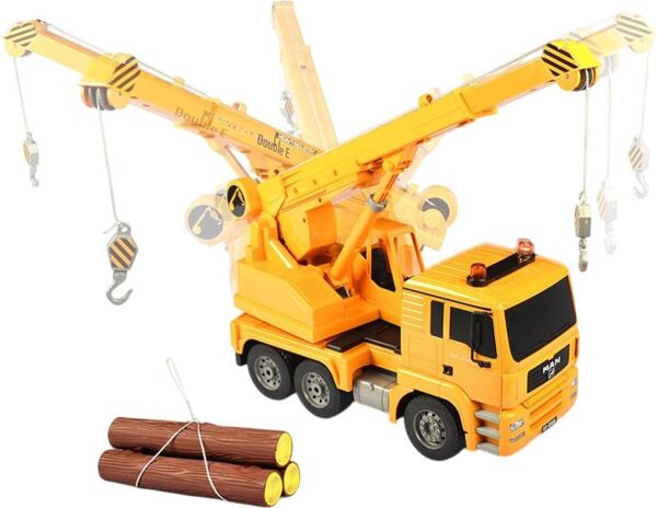 Выбрала этот подъемный кран на радиоуправлении в интернет магазине Мойо. Очень понравилось, как натурально, он сделан все детали совсем как у настоящего. В наборе есть связка дров, которые можно перевозить на крюке, хотят туда можно прицепить много всего, машинка выдержать небольшой вес. Пульт управления удобный и с ним справится даже малыш.