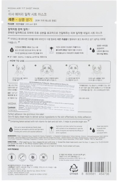 Схожі товари Маска для обличчя Missha Airy Fit Sheet Mask Lemon Лимон 19г