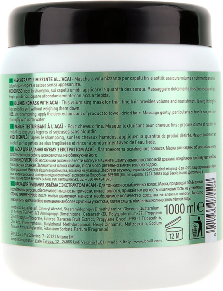 Маска для додання волоссю об'єму Brelil Numero з екстрактом асаї 1000мл