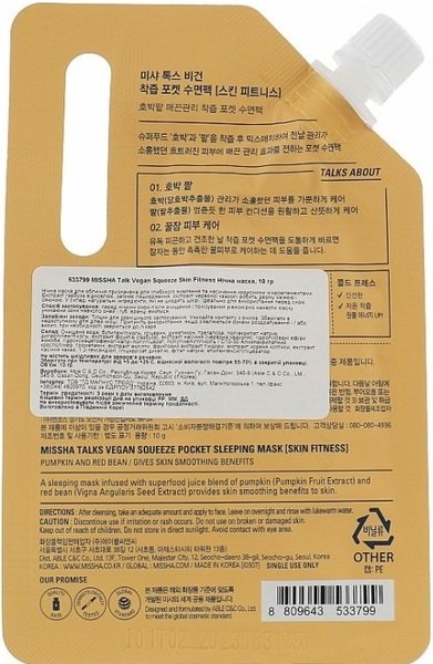 Маска нічна для гладкості шкіри Missha Talk Vegan Squeeze Skin Fitness 10г