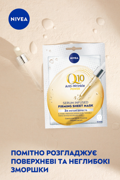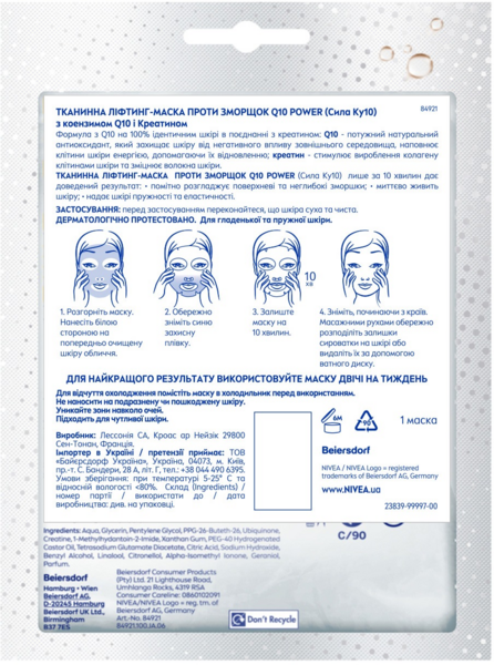 Схожі товари Маска тканинна для обличчя Nivea Anti-Wrinkle Q10 Power 28 г