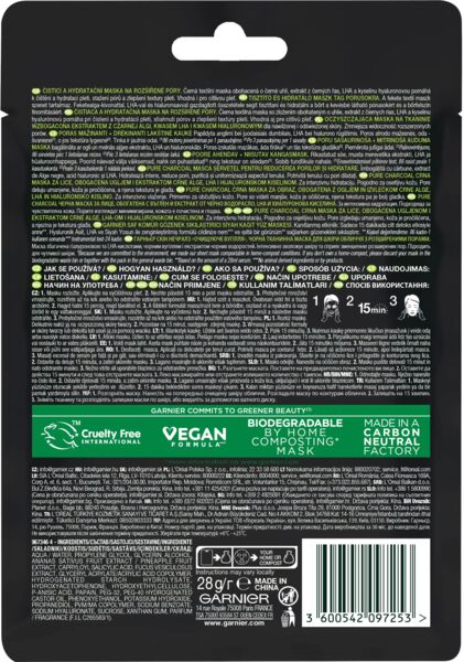 Маска тканинна Garnier Skin Naturals Очищаючий Вугілля+Чорні водорості 28г