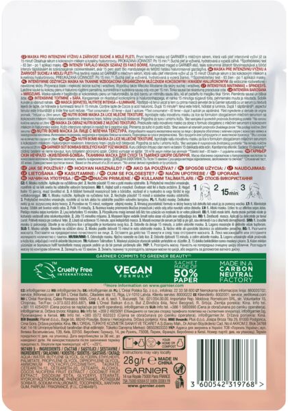 - Тканинна маска зроблена з рослинних волокон, пройшла дерматологічні тести і підходить для чутливої шкіри.