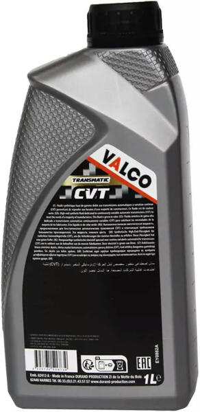 Трансмісійне мастило Valco Transmatic CVT — синтетична рідина, розроблена спеціально для безступеневих трансмісій (CVT), які встановлюються в багатьох гібридних легкових автомобілях. Це мастило забезпечує надійний захист і оптимальну роботу вашої трансмісії, забезпечуючи довгий термін служби та надійний захист різних частин механізму, включаючи особливо важливий ремінь трансмісії, незалежно від його типу.