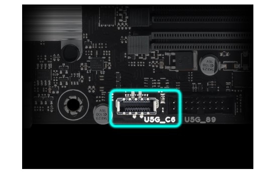 Ця материнська плата оснащена роз'ємом USB 5 Gbps Type-C на передній панелі для швидкого передавання даних зі швидкістю до 5 Гбіт/с.