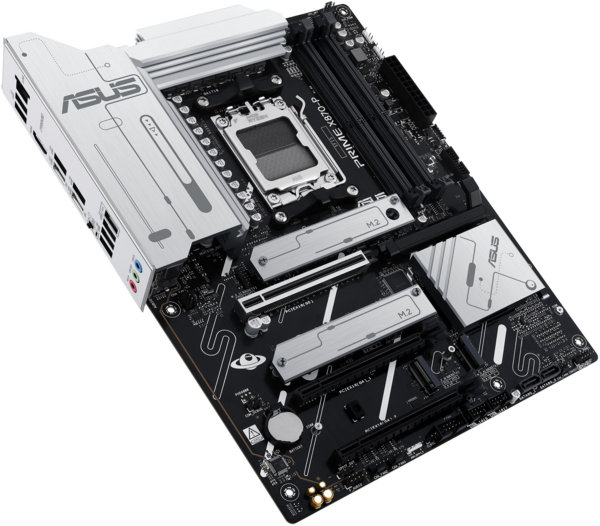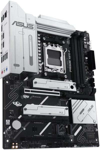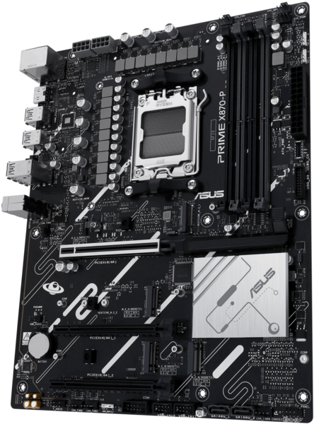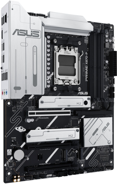PRIME X870-P пропонує загалом чотири слоти M.2, включаючи один, що підтримує швидкість передачі даних до 128 Гбіт/с через PCIe 5.0, два, що підтримують 64 Гбіт/с через PCIe 4.0, і один, що підтримує PCIe 3.0. Це дає змогу пришвидшити час завантаження операційної системи та програм.