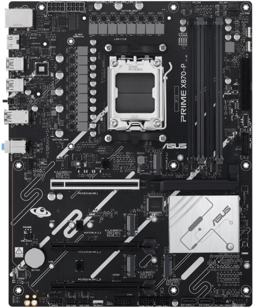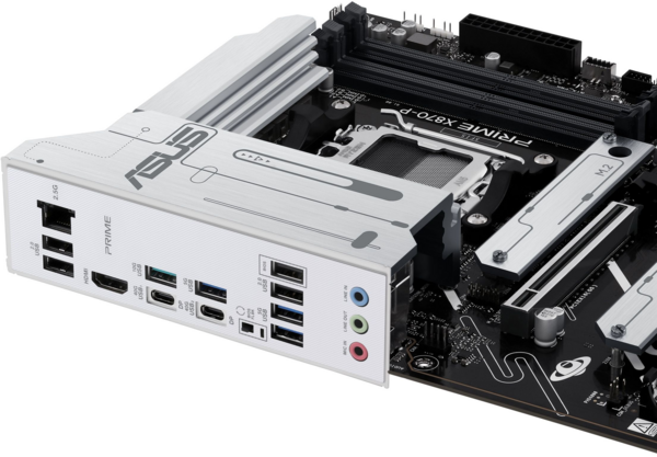 Материнська плата PRIME X870-P пропонує універсальні можливості підключення, включаючи підтримку PCIe 5.0, Realtek 2.5Gb Ethernet і безліч портів USB.