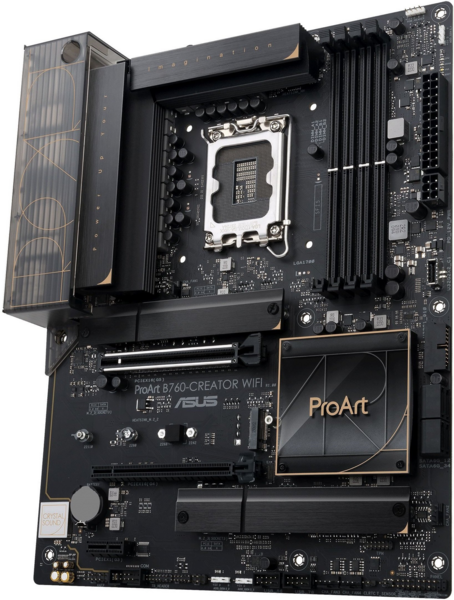 ProArt B760-Creator WiFi оснащений трьома вбудованими слотами M.2, два з яких підтримують інтерфейс PCIe 4.0, забезпечуючи вибухову швидкість до 64 Гбіт/с, а третій - інтерфейс PCIe 3.0, забезпечуючи швидке завантаження операційної системи або додатків.