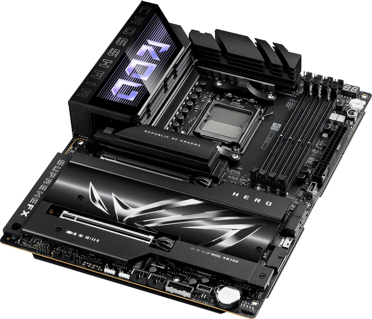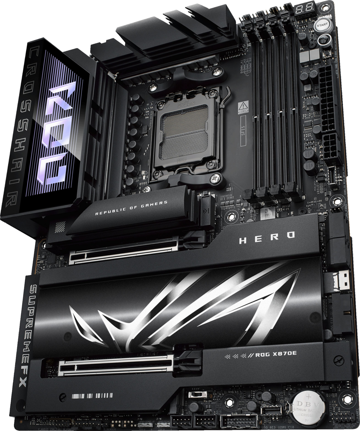 Повністю підтримуючи новий стандарт, ROG Crosshair X870E Hero пропонує широку підтримку Gen 5, щоб забезпечити необмежену пропускну здатність для найшвидших твердотільних накопичувачів і відеокарт.