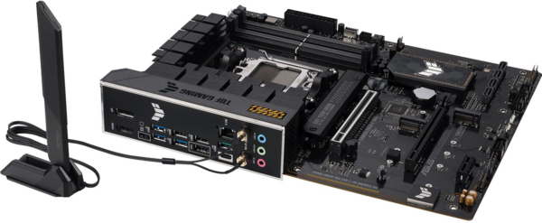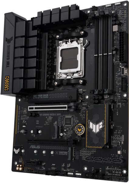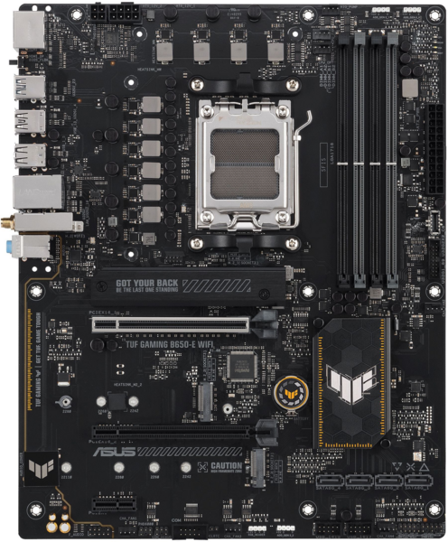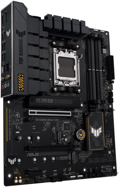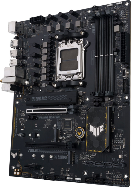 Увібрала в себе всі основні елементи новітнього роз'єму AM5 для настільних процесорів AMD Ryzen і поєднала їх з ігровими функціями та перевіреною довговічністю. Завдяки компонентам військового класу, модернізованій системі живлення та комплексній системі охолодження ця материнська плата перевершує всі очікування, забезпечуючи надійну та стабільну продуктивність для марафонських ігор. Материнські плати TUF GAMING також проходять суворі випробування на витривалість, щоб гарантувати, що вони зможуть впоратися з умовами, в яких інші можуть зазнати невдачі. Естетично ця модель відрізняється міцним чорним кольором і геометричними елементами дизайну, що відображають надійність і стабільність, які визначають серію TUF Gaming.