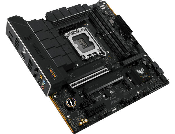 Материнські плати TUF GAMING B760M - це багатофункціональний високопродуктивний ігровий набір із надшвидкісною мережею для безперебійної роботи в онлайн-іграх, чистим звуком із позиційними підказками для FPS-ігор і вбудованим RGB-підсвічуванням, яке синхронізується з підключеним обладнанням, щоб персоналізувати ігрову атмосферу.