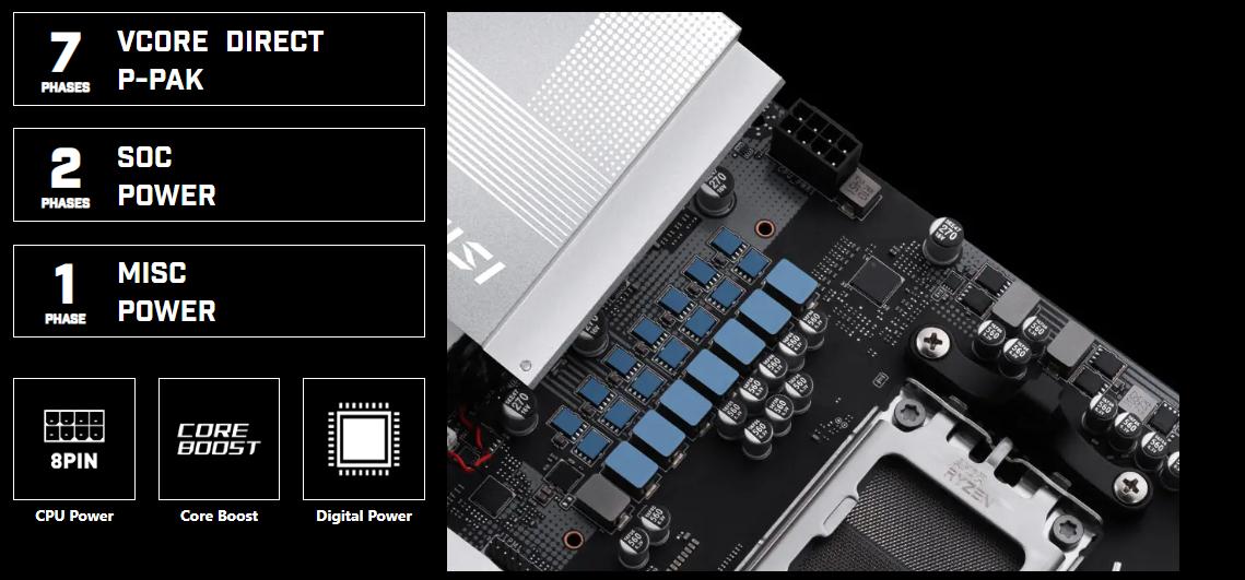 Розкрийте та підтримуйте максимальну продуктивність за допомогою флагманського дизайну VRM, побудованого з 12+2+1 цифровими фазами живлення. Завдяки подвійним роз'ємам живлення PRO B850-P WIFI готовий до викликів високопродуктивних процесорів.