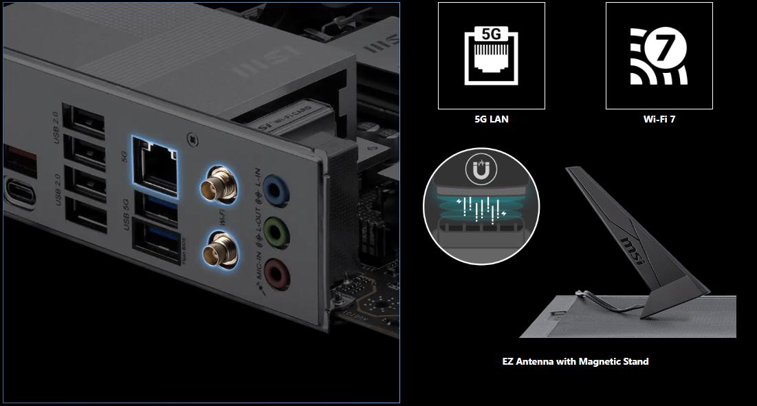 MSI EZ Antenna полегшує процес встановлення антени, просто прикріплюючи кріпильні елементи до материнської плати без обертання.