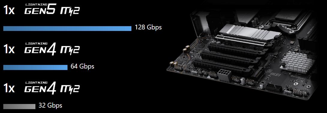 Материнські плати MSI серії PRO підтримують усі найновіші стандарти зберігання даних, що дозволяє користувачам підключати будь-які надшвидкісні накопичувачі. Швидше запускайте ігри, швидше завантажуйте рівні та отримуйте реальну перевагу над ворогами.