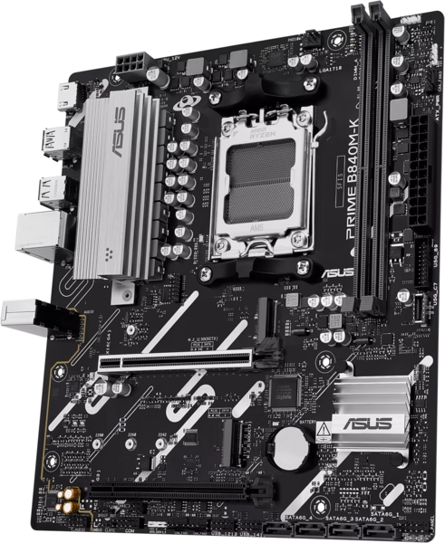 Материнська плата PRIME B840M-K оснащена декількома радіаторами та набором гібридних роз'ємів, щоб забезпечити стабільну роботу вашої системи під час інтенсивних навантажень.