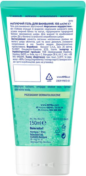 Схожі товари Матуючий гель для вмивання Nivea з океанічними водоростями 150мл
