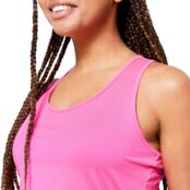 Майка з м'язистою спинкою та заокругленим подолом, яка забезпечить вам необхідний комфорт під час тренувань. Ви оціните її більш жіночний і модний новий стандартний крій.
