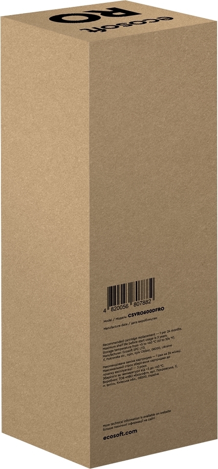 | Комплектація (можливі зміни в різних поставках) | Документація, Мембрана зворотного осмосу |