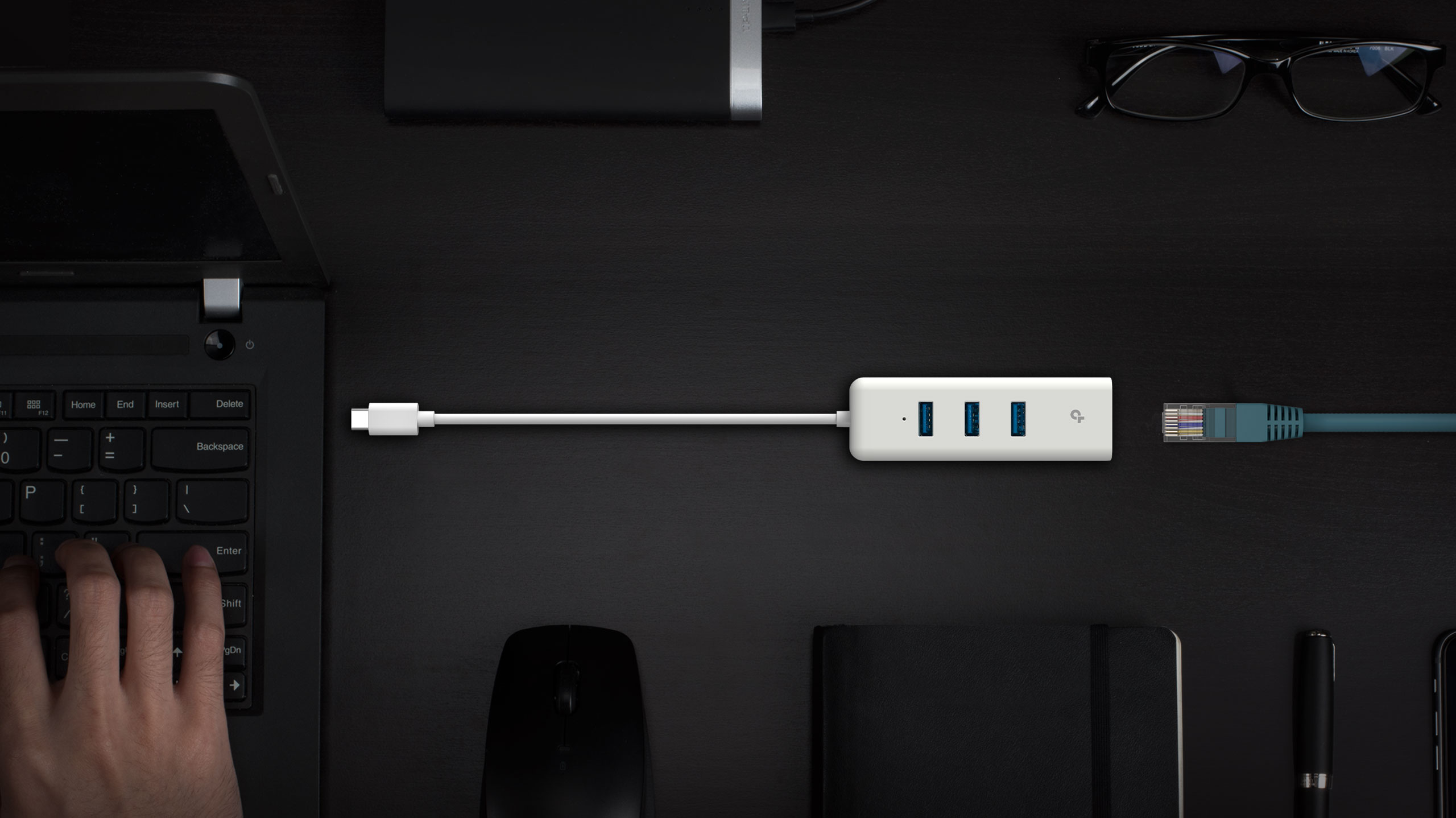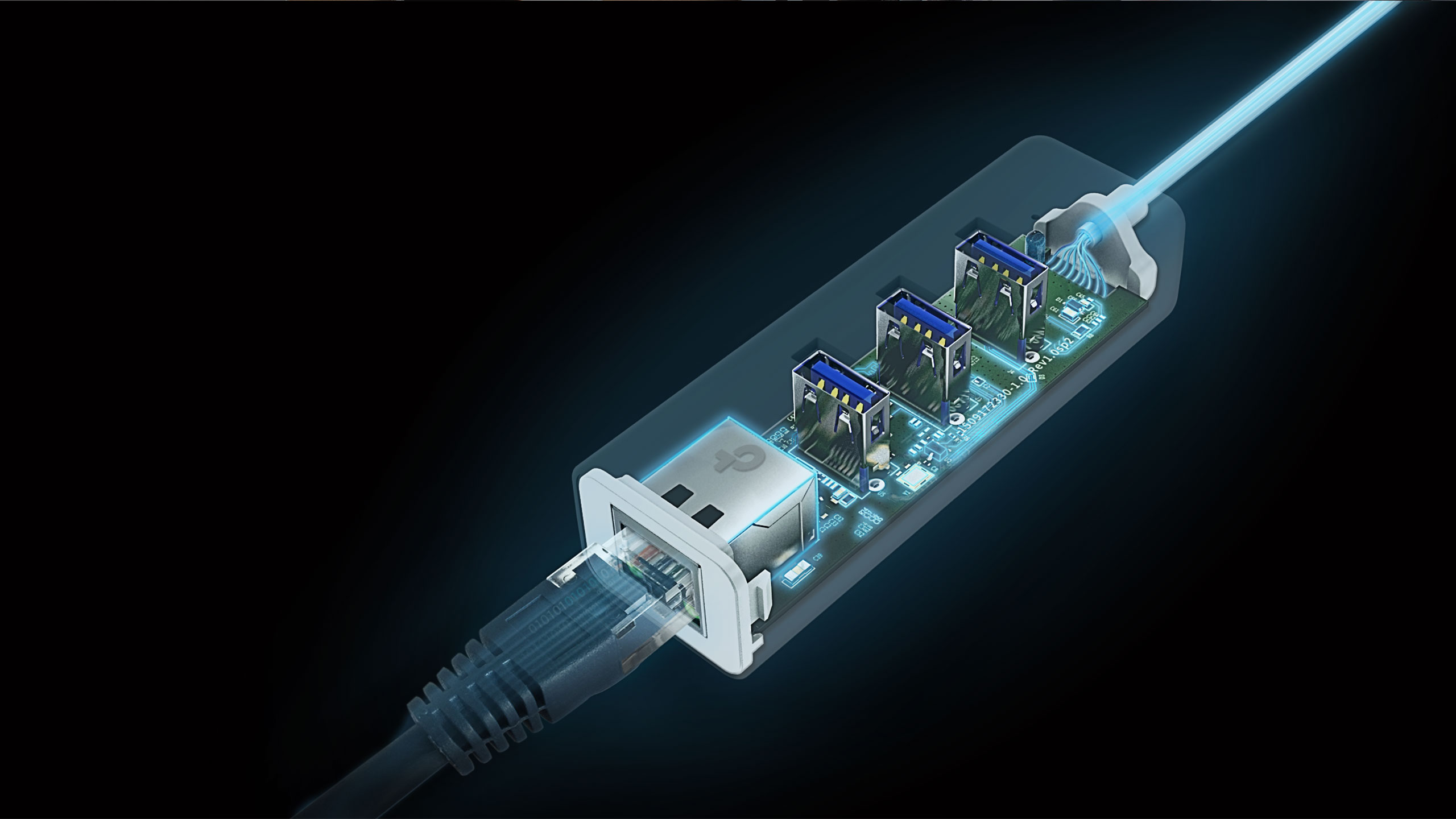 UE330C - це 3-портовий концентратор USB 3.0 та адаптер USB 3.0 на Gigabit Ethernet.