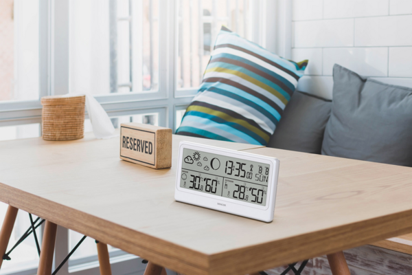 Метеостанція оснащена індикацією загрози плісняви, цифровим годинником, індикацією фази місяця і рівня комфорту.
