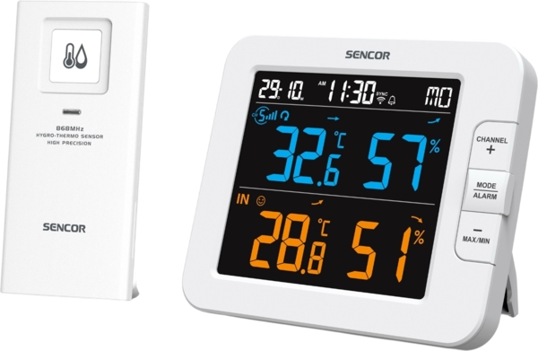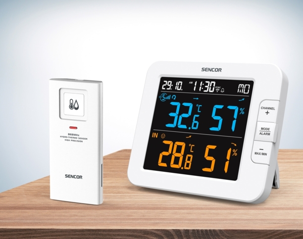 Метеостанція і сенсор можуть працювати за максимальної дистанції до 150 м (на відкритій місцевості). Метеостанція підходить як для настільного розміщення, так і для кріплення на стіну. Метеостанція працює від мережі. Сенсор працює від батарейок (не входять до комплектації).