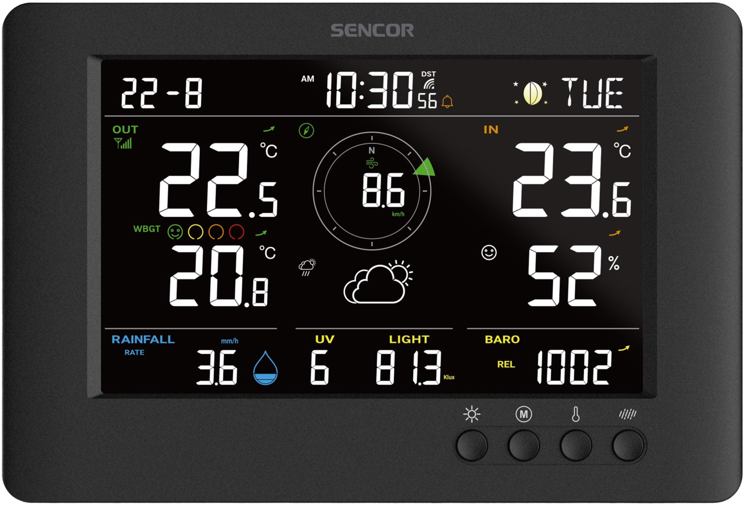 Але метеостанція WBGT SWS 9500 пропонує набагато більше, ніж просто детальний огляд погоди. Дозволяє зручно налаштовувати час, дату та день тижня – до 7 мов. Крім того, всі ці дані автоматично синхронізуються через радіосигнал, тому у вас завжди є точні дані. Крім того, вона також показує поточний місяць та дозволяє точно вимірювати кількість опадів у днях, тижнях чи місяцях або в загальній кількості. Також доступний погодинний огляд за останні 24 години. Станція також пропонує можливість налаштування сповіщень для різних значень – хай то буде занадто висока чи низька температура, ризик ожеледиці чи снігопаду.
