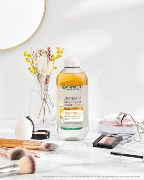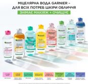 Міцелярна вода для очищення шкіри обличчя від Garnier - це ваш надійний помічник у боротьбі з макіяжем та забрудненнями. Завдяки унікальним мікрочастинкам-міцелам, вона ефективно, але ніжно видаляє макіяж з обличчя, очей та губ, не потребуючи зайвого тертя. Ці мікрочастинки захоплюють забруднення та надлишки шкірного жиру, утримуючи їх всередині, що забезпечує глибоке очищення з максимальним комфортом. Міцелярна вода має м'яку, делікатну формулу, що підходить для будь-якого типу шкіри, навіть для найчутливішої. Після її використання ваша шкіра буде чистою, свіжою та заспокоєною, без відчуття стягнутості чи дискомфорту.