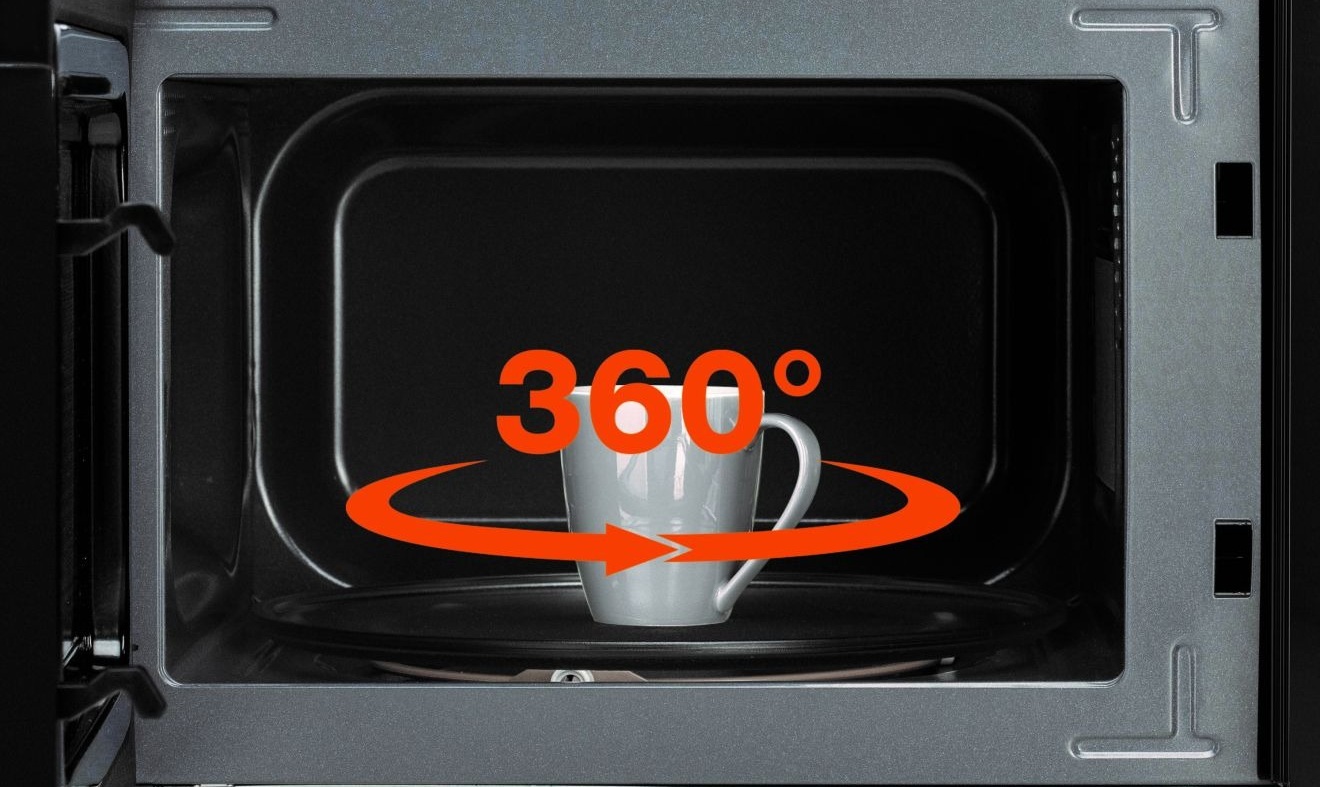 Їжа готується або розігрівається до ідеального стану, оскільки тепло сягає кожної часточки. Через постійне обертання тарілки мікрохвилі ефективно й рівномірно нагрівають те, що ви готуєте. Обертання також сприяє оптимальному розморожуванню.