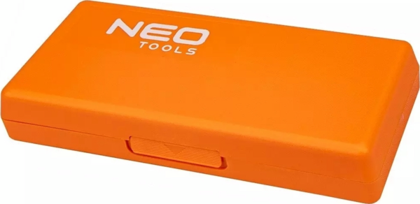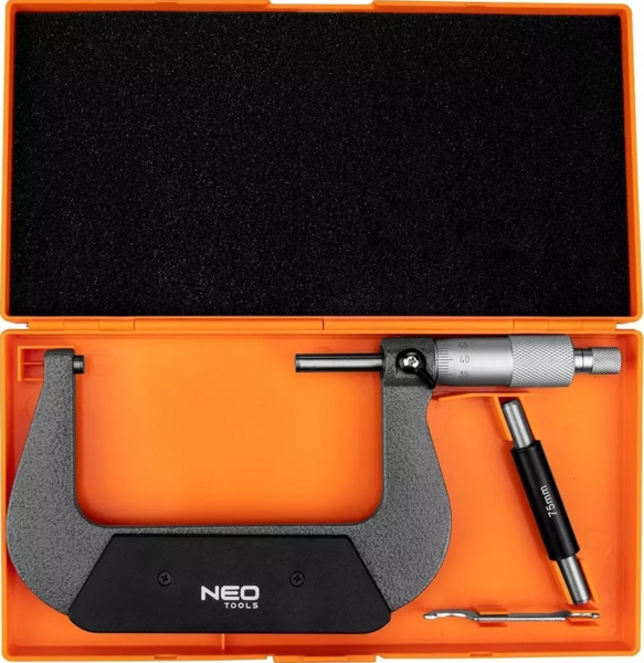 Мікрометр Neo вирізняється високою якістю виготовлення та плавною роботою барабана. Завдяки тому, що він оснащений практичною муфтою для притискання елемента, він чудово підійде для столярних робіт. Мікрометр комплектується ключем для обнулення, шаблоном і зручною пластиковою коробкою, що дає змогу комфортно зберігати інструмент.