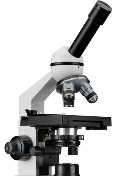 За необхідності отримання великого збільшення мікроскоп може бути оснащений додатковими окулярами та об'єктивами. Світлодіод забезпечує рівномірне підсвічування препарату світлом з правильною кольоропередачею. Спрямованість освітлення регулюється конденсатором Аббе з числовою апертурою NA 1.25, що дозволяє опціонально використовувати об'єктиви з більшою кратністю (до 100х). Конденсор відцентрований на фабриці, проте має два кріпильні гвинти, що дозволяють зробити необхідне коригування. За необхідності проведення спостережень у темному полі можна встановити сухий конденсор Bresser або темнопольний масляний конденсор Bresser. Кількість світла регулюється ірисовою апертурною діафрагмою, що дозволяє плавно, безступінчасто регулювати інтенсивність освітленості.
