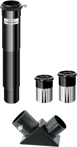 | Комплектація (можливі зміни в різних поставках) | Адаптер, Батарейка АА – 2 шт., Видошукач оптичний, Обертаюча лінза, Дзеркало, Зум-окуляр, Інкубаторій, Колба – 5 шт., Мікроскоп, Набір аксесуарів для препарування, Об`єктив – 3 шт., Окуляр - 2 шт., Покривне скло – 8 шт., Предметне скло – 8 шт., Слайд – 3 шт., Телескоп, Тринога |