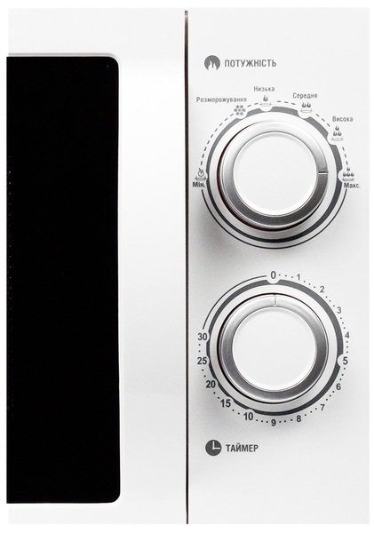 Ця мікрохвильова піч білого кольору ідеально впишеться в будь-яку сучасну кухню. Завдяки потужності 700 Вт і внутрішньому об'єму 20 літрів ви зможете швидко розігріти їжу для всієї родини. Потужність можна регулювати - є 6 рівнів. Тип управління зручний - механічний. Діаметр ручки обертання - 245 мм, чого достатньо навіть для об'ємних страв. Дверцята, що відкриваються збоку, забезпечують додаткову зручність під час використання. Прилад економічний в плані споживання електроенергії.