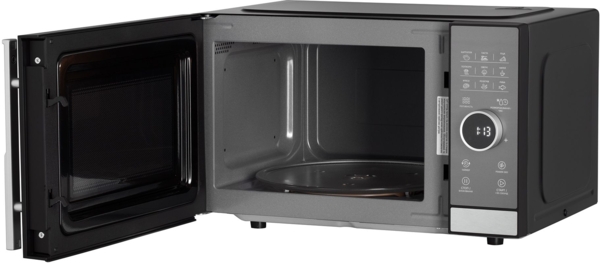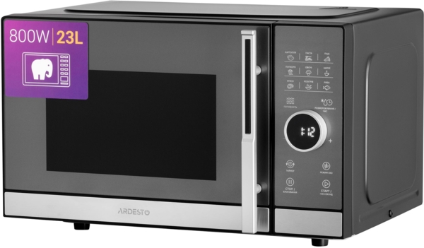 Не только стильно выглядит, но и функциональностью не проигрывает. Управлять микроволновой печью просто благодаря понятному интерфейсу. Все кнопки на панели четко обозначены, процесс использования интуитивно понятный. Микроволновая печь оборудована всеми необходимыми режимами, включая размораживание, гриль и различные мощности.